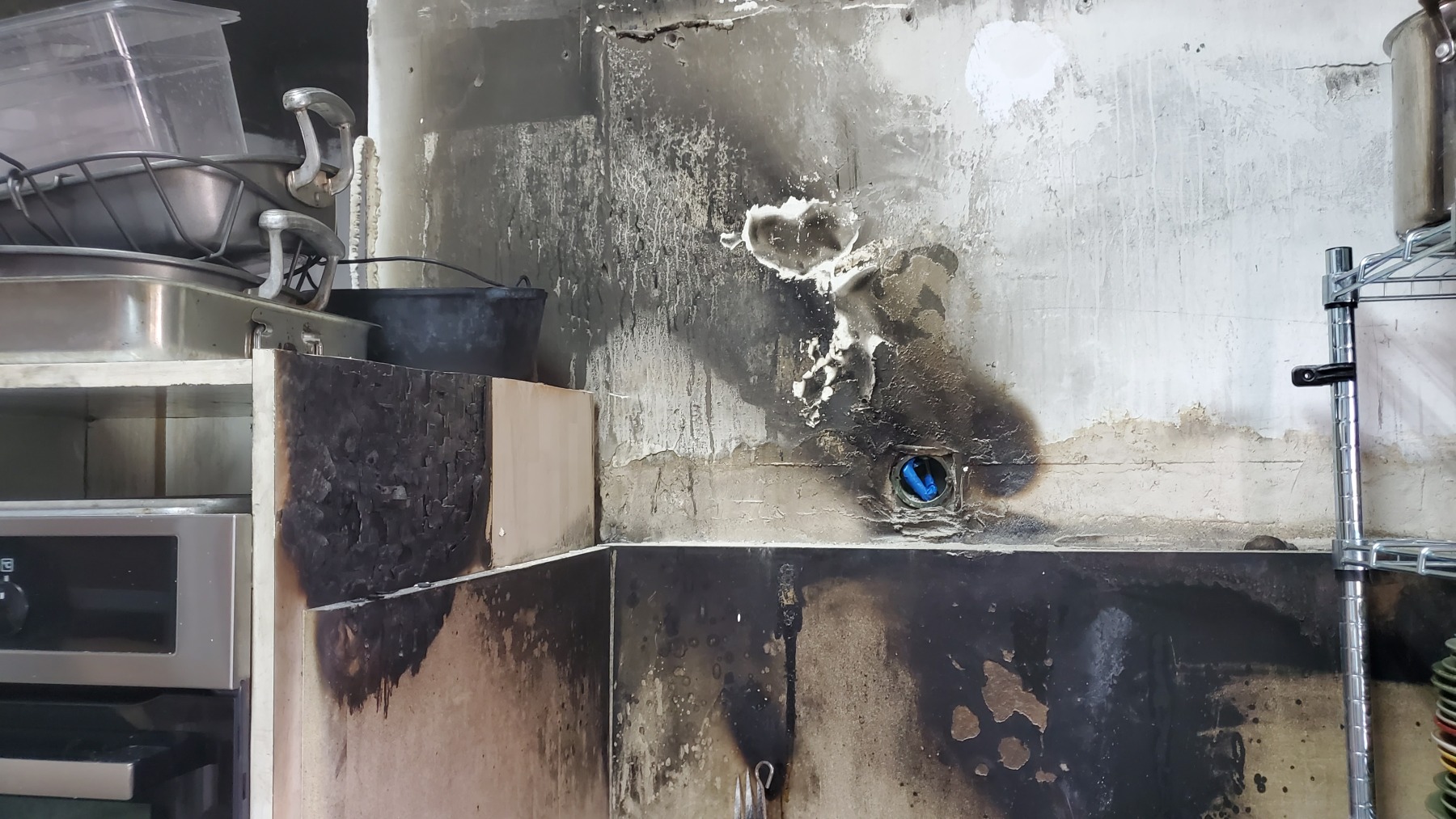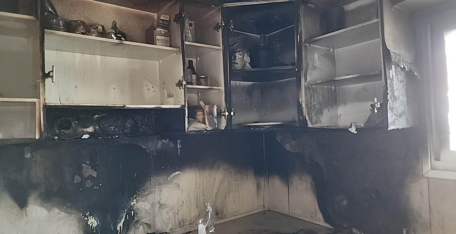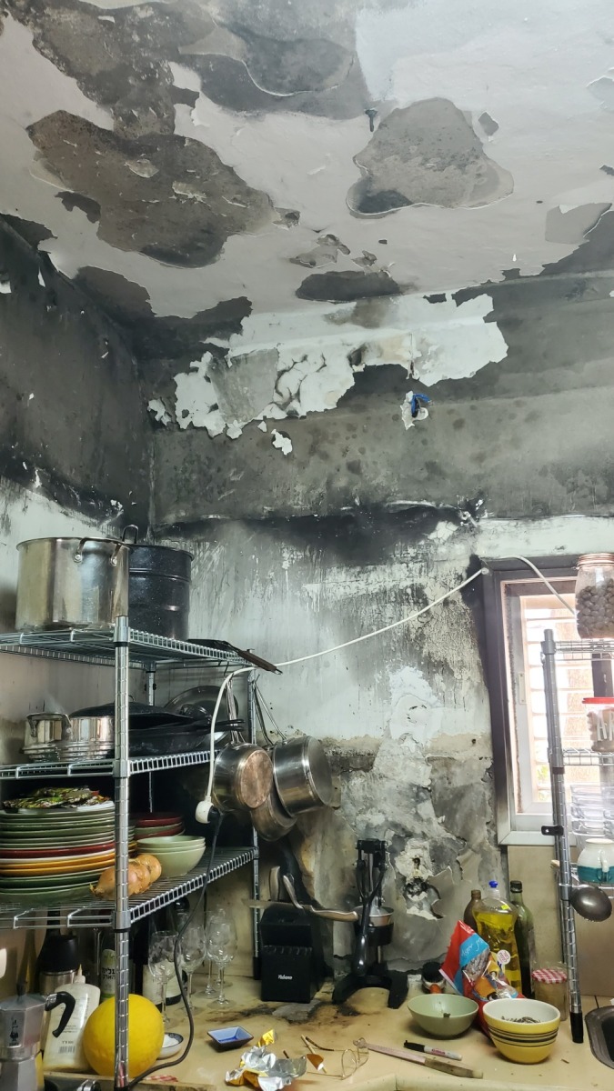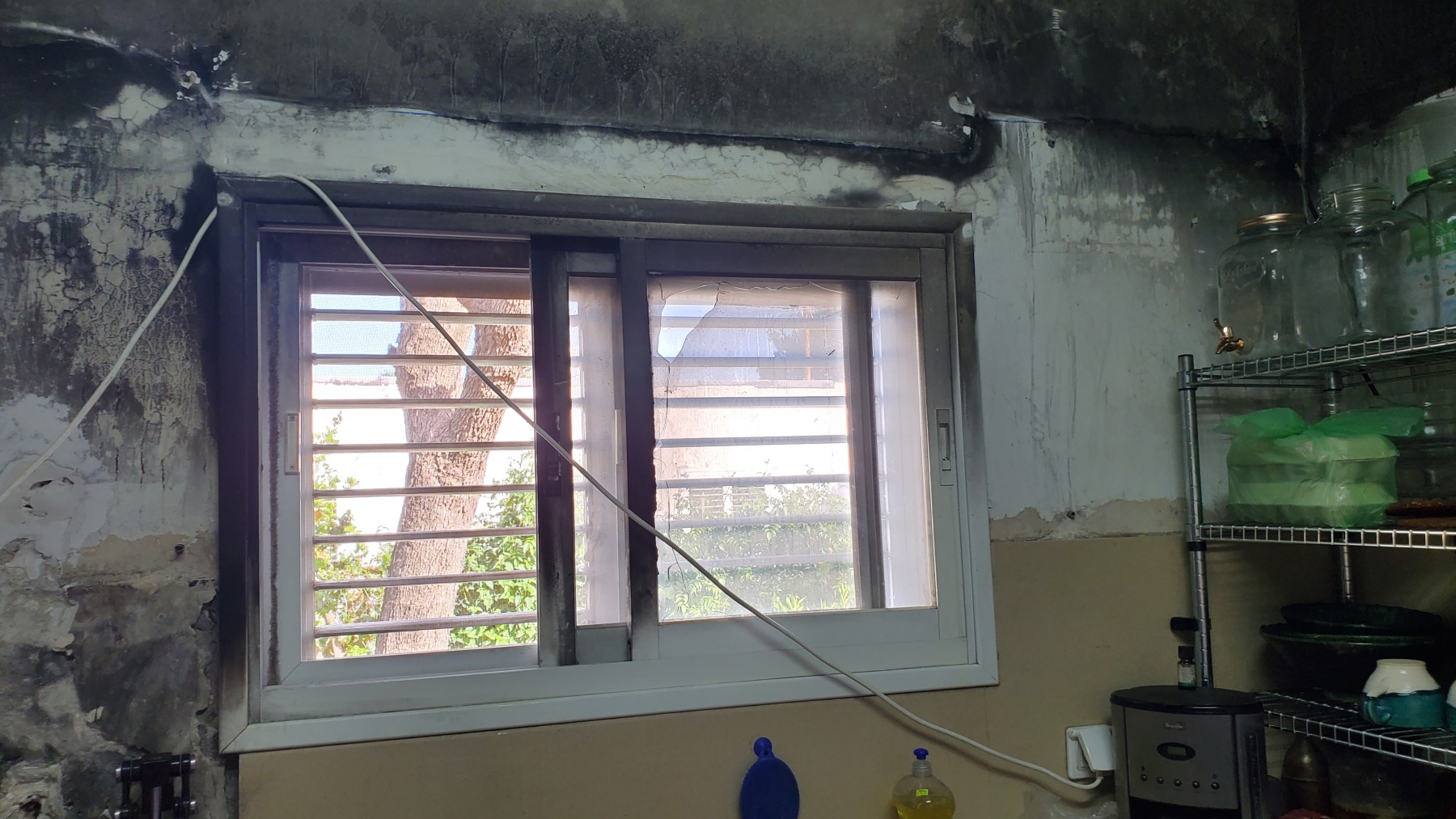 We are renters of this property, so we were solely responsible for the damage. Fortunately, neither my husband nor I were not injured nor were my rescue parrots or dogs. Praise Abba!