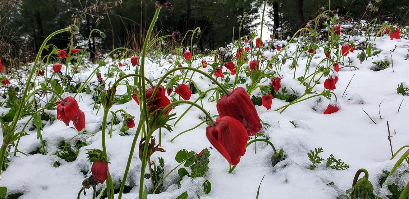 Anemones in the snow, Birria Forest 18/2/21